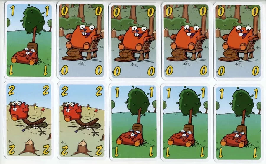 Beschrijving van Beverbende – 999-BEV01 : In Beverbende gaan tactiek en geheugen hand in hand. Je hebt 4 kaarten met strafpunten gedekt voor je liggen, maar je mag er maar twee bekijken. Als je aan de beurt bent, trek je een kaart en doe je daar een actie mee. Zo kun je de kaart tegen één van je gedekte kaarten ruilen of zelfs invloed uitoefenen op de kaarten van de andere spelers. Als jij de minste strafpunten hebt, win je de ronde. Beverbende is bij uitstek geschikt voor gezinnen met kinderen. Ook te combineren met Beverclan.