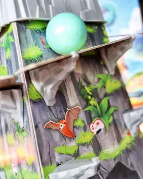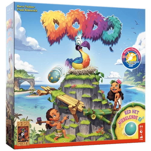 Beschrijving van Dodo – 999-DDO01 : De heilige dodo van de Hagulaminapitopasi-stam legt ieder jaar op de top van een berg een ei. Dit ei rolt tergend langzaam richting de afgrond. Samen met je medespelers zet je alles op alles om het ei te redden. Dit doe je door bruggen te bouwen, die ervoor zorgen dat het ei veilig en wel naar een boot aan de voet van de berg rolt. Maar als jullie te langzaam zijn, valt het ei te pletter! In dit hilarische geheugen- en actiespel moet je samen zo snel mogelijk genoeg fiches vinden om bruggen op de berg te zetten. Dit doe je door met een dobbelsteen te rollen en het juiste bijhorende fiche onder alle gedekte fiches te vinden. Alleen als je onthoudt welke fiches waar liggen, kun je op tijd de bruggen in elkaar zetten. Dodo is een race tegen de tijd. Het wiebelende ei heeft namelijk een eigen willetje. Soms kruipt het ei met een slakkengang de berg af. En soms rolt het ei ineens met een rap tempo bijna een brug af. Weten jullie het ei op tijd te redden?