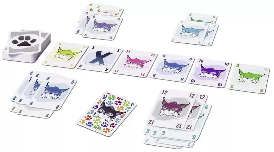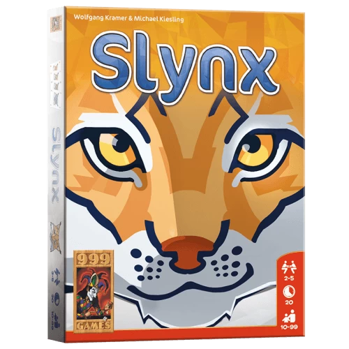 Beschrijving van Slynx – 999-SLY01 : In dit snelle kaartspel moet je punten verzamelen door groepjes kaarten neer te leggen. Zo maak je een stapel van kaartengroepen, zoals bijvoorbeeld een groep van vier kaarten met het getal 2 bovenop een groep van 3 kaarten met het getal 9. Elke kaart die je zo neer weet te leggen is een punt waard. Maar dat is niet alles! Zodra je kaarten hebt neergelegd, mag je namelijk kaarten van je tegenspeler stelen. Iedere speler die als bovenste groep een aantal kaarten heeft liggen dat gelijk is aan jouw groep en waarvan de waarde per kaart lager is dan die van jou, is de klos. Pak deze kaarten af en neem ze op hand, of dwing je tegenspeler deze kaarten zelf te verwijderen. Zo saboteer je elkaars puntenverzameling. Het spel heet niet voor niets Slynx! Slynx is een heel eenvoudig spel, dat echter boordevol tactiek zit. Om meer punten te scoren moet je kaarten van je tegenspelers op hand nemen. Maar hoe meer kaarten jij op deze manier verzamelt, hoe meer risico je loopt. Zodra iemand na het neerleggen van zijn laatste kaart een volledig lege hand heeft, is het spel namelijk afgelopen. Al die kaarten in jouw hand veranderen dan automatisch in strafpunten!