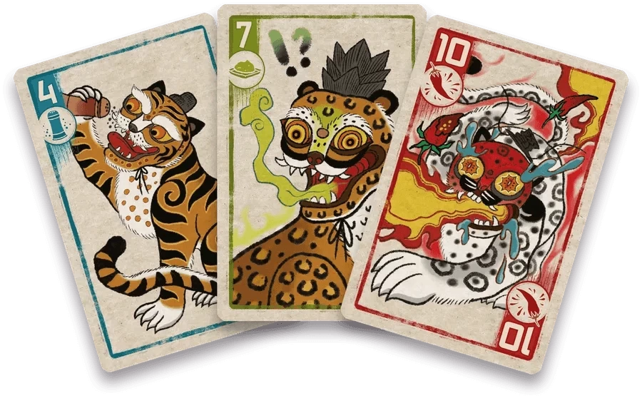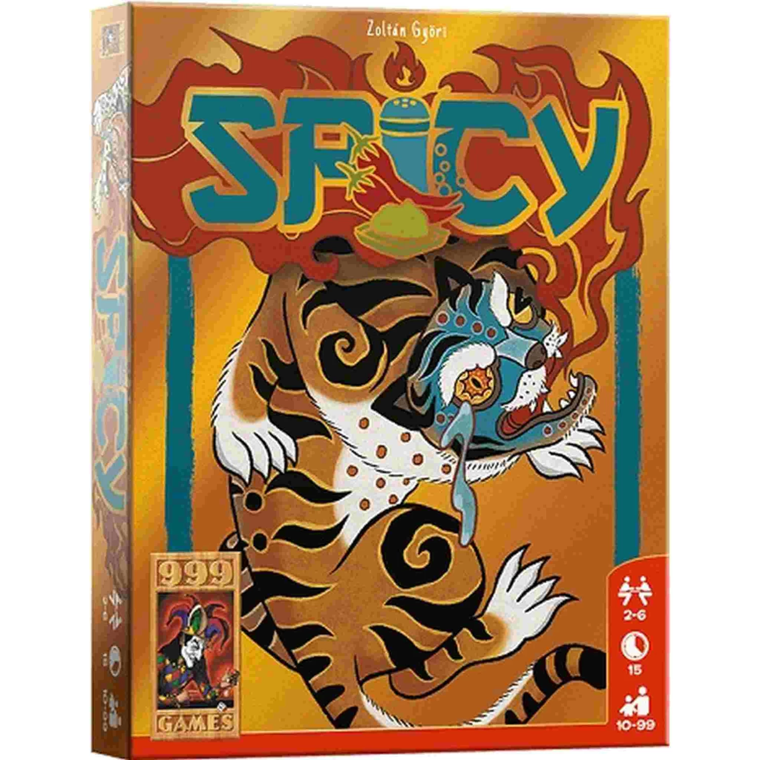 Beschrijving van Spicy – 999-SIY01 : Drie grote katten die niet meer wilden vechten om wie de baas is, spraken af om het gevecht te staken en hun negen levens op te fleuren met een wedstrijd met hete kruiden. Helaas speelde iedereen al snel vals, dus vonden de katten een erg heet, vaak betraand blufspel uit! Het maakt niet uit hoe sterk, oud of stoer je bent, Spicy is een pittig en snel blufkaartspel voor het hele gezin.