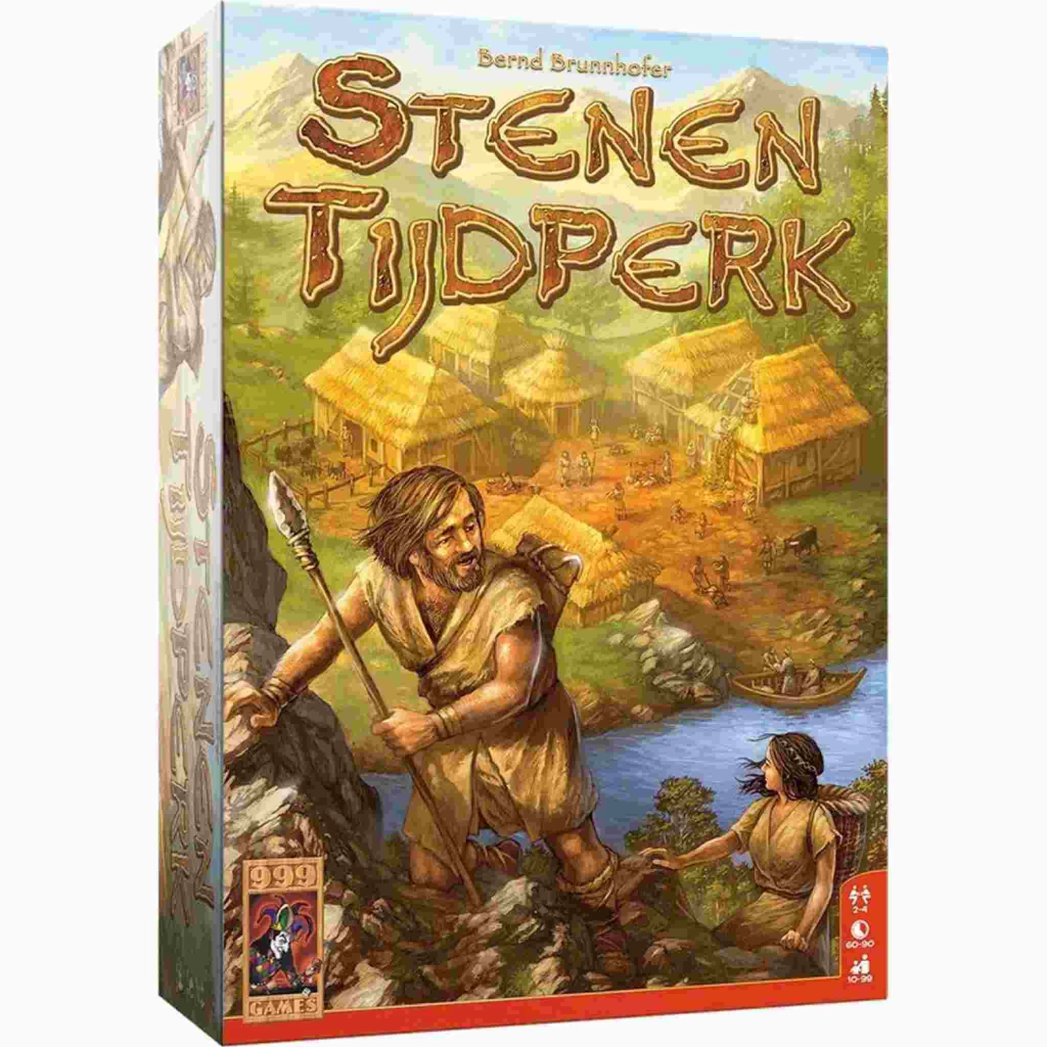 Beschrijving van Stenen Tijdperk – 999-STE01 : De steentijd kenmerkt zich door beginnende akkerbouw, het produceren van nuttige grondstoffen en het bouwen van hutten. Handelen wordt steeds populairder en de beschaving ontwikkelt zich in rap tempo. Maar ook traditionele vaardigheden als jagen zijn vereist om stamleden te eten te kunnen geven.In dit bordspel probeer je te overleven in Stenen Tijdperk. Daartoe zet je jouw stamleden op verschillende gebieden in. Je jaagt op wild om je volk van voedsel te voorzien, ontwikkelt gereedschap en verzamelt grondstoffen als hout, steen en zelfs goud, waarmee je functionele en waardevolle hutten bouwt. Uiteraard ontbreekt ook gezinsuitbreiding niet, noodzakelijk om later in het spel meer acties te mogen uitvoeren. Tijdens het spel zijn er talloze manieren om aan punten te komen, zoals het bouwen van hutten en het verzamelen van beschavingskaarten in combinatie met bepaalde ontwikkelingen. Je wint als je uiteindelijk de meeste punten hebt.In Stenen Tijdperk zijn er veel manieren om je doel te bereiken, waardoor iedere speler een andere strategie kan kiezen. Aan het einde van het spel zal blijken welke de juiste was.Stenen Tijdperk is een prachtig spel voor zowel families als gevorderde spelers. Wegens aanhoudend succes brengen we het spel opnieuw op de markt.
